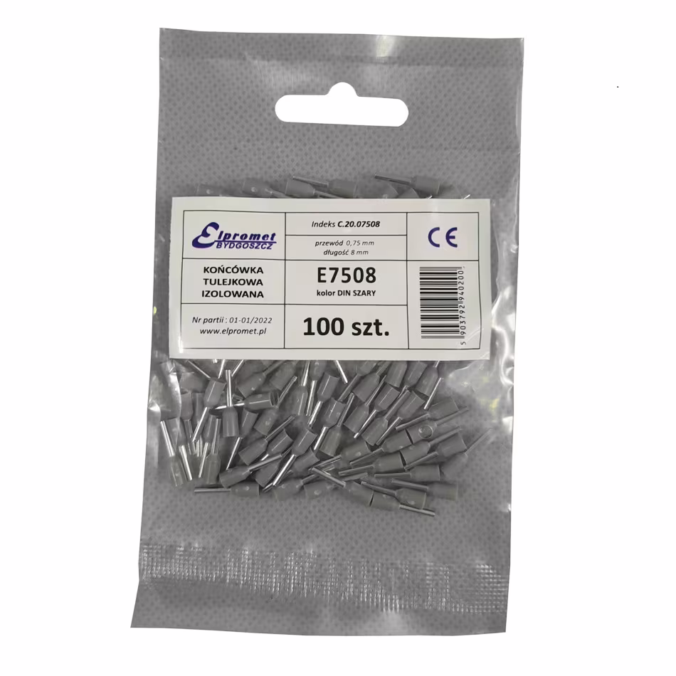 Końcówka tulejkowa izolowana 0,75/8 (100szt.) szara