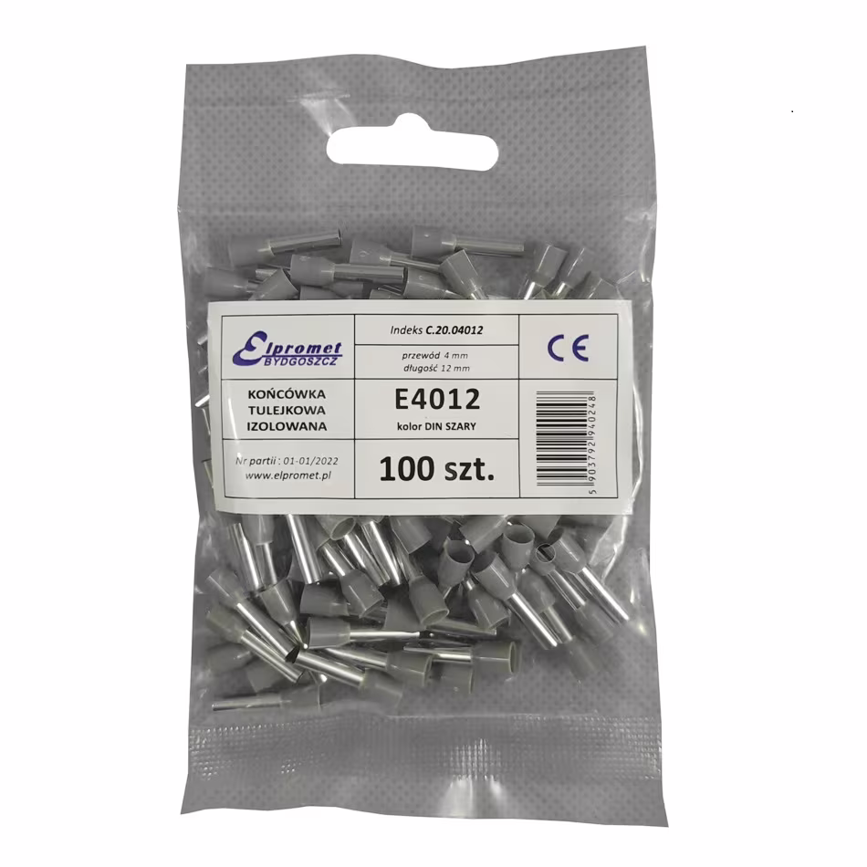 Końcówka tulejkowa izolowana 4/12 (100szt.) szara