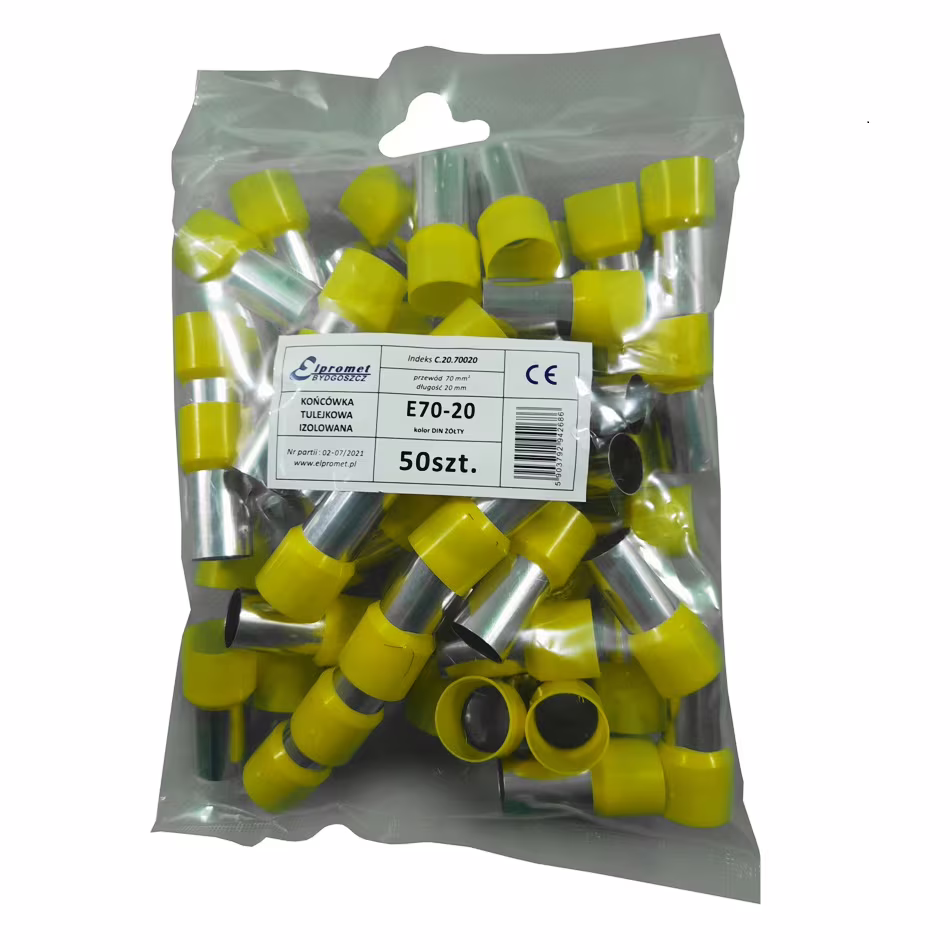 Końcówka tulejkowa izolowana 70/20 (50szt.) żółta