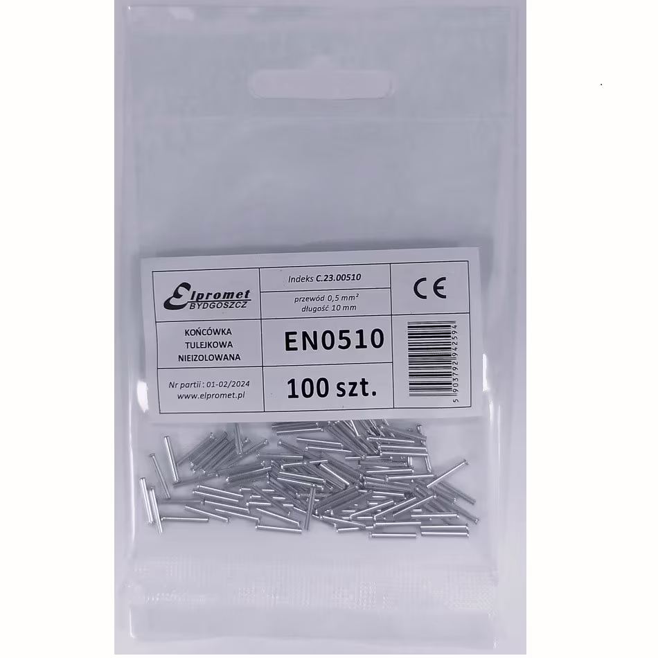 Końcówka tulejkowa nieizolowana 0,5/10 (100szt.)