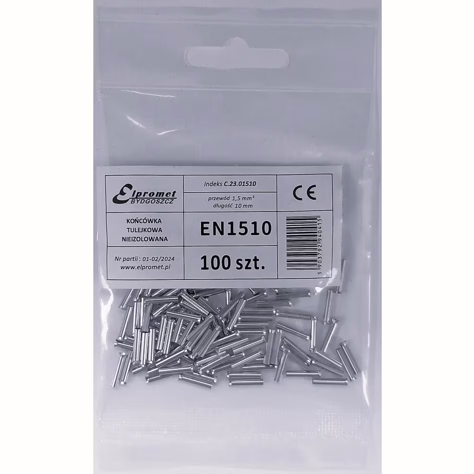 Końcówka tulejkowa nieizolowana 1,5/10 (100szt.)